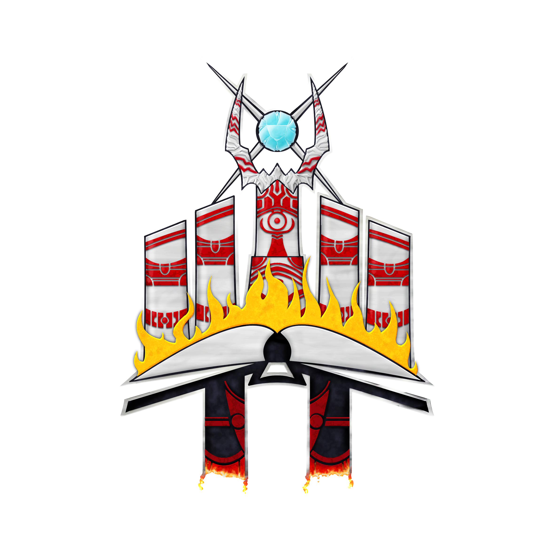 The great warhorse beneath him—black as midnight with a white star blazing on its forehead—pawed the earth impatiently, sensing its rider's readiness for whatever lay ahead. Mail clinked softly as Harlan shifted in the saddle, one gauntleted hand resting on the pommel of the ancient sword at his hip, the other holding the reins with practiced ease. A vibrant red cloak indicative of the Ossian towers, billowed behind him in the evening wind, and the heraldic device on his surcoat—a Line of 5 towers on standing on a book—marked him as a Sentinel of Ossian, though his scarred hands and weathered face spoke of a man who led from the front lines rather than from the safety of castle walls.